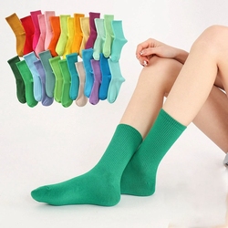 Wholesale Solid Color Casual Women's Socks Candy Mid Tube Cotton Socks Custom Street Sports Crew Socks Four Seasons Casual Socks