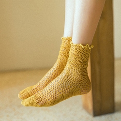 Primavera estate nuove calze trasparenti in pizzo a rete da donna giapponese dolce fiore stile College in legno orecchie calze sottili